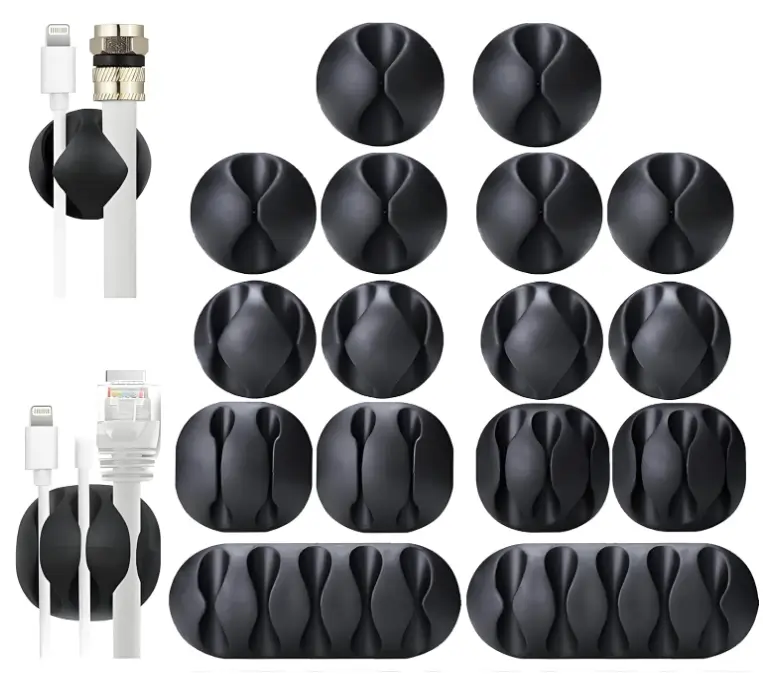 I purchased the black set, and it immediately made my desk look much cleaner and more organized. The clips adhere very well, and I was genuinely surprised by how firmly they stay in place once mounted. They open smoothly, making it easy to insert or remove cables without any struggle. At the same time, they hold different types of wires securely without bending, stretching, or damaging them. I really appreciate that they are available in multiple colors, which makes it simple to match them to different rooms or setups. I have used them for phone chargers, laptop cords, and even a few kitchen cables. Everything now stays exactly where it should instead of sliding around or getting tangled. The difference in organization was noticeable right away. The material feels strong and durable, giving confidence that they will last. Overall, they are simple to use and highly effective for everyday cable management